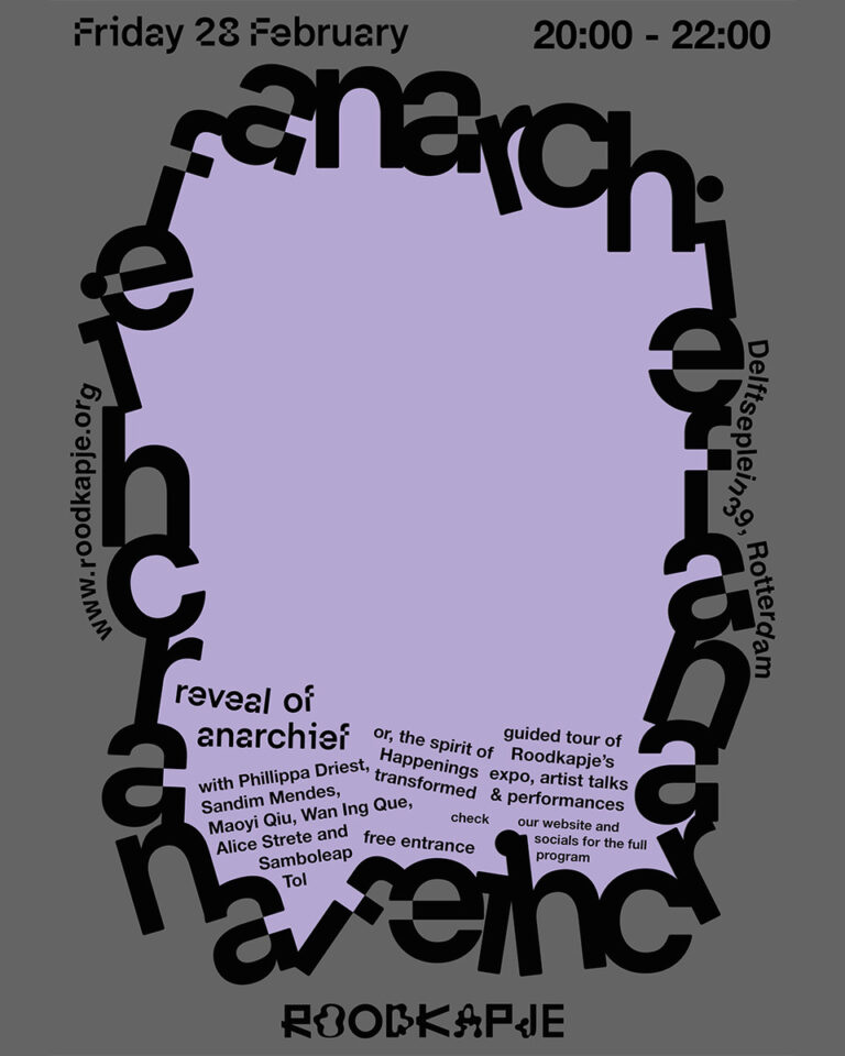 Join us for the Big Reveal of Roodkapje’s exhibition anarchief, or, the spirit of Happenings transformed