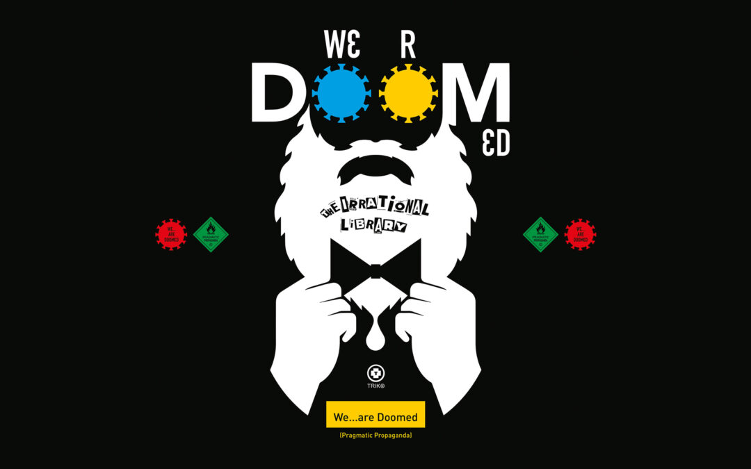 This is a collaboration of minds fueled by music and imagery, one that will surely make the enaged mind sink into every song and in every page. Works that synthesis music, poetry and art all for the sake of refueling the stagnant thought processes of a dehydrated mind. By combining all of these elements into a new form of “pragmatic propaganda” The Irrational Library and TRIK will be supporting this release with a tour of galleries and podia filling it with the arts, sights and sounds of a true propaganda extravaganza of live music and art. An event full of bombast and mind tingling inclusive antagonistical insight, combining the get up and come get some groove of The Irrational Library encompassed by the kaleidoscope poster, art and cartoon-design, portrayed in the artistic views of TRIK. A sensory collaboration that will surprise, contradict and catch you off guard. The book, full of sociopolitical cartoons by illustrator TRIK, is also the third studio album by the inimitable Irrational Library band. In order to really bring the deeper meaning of ’Pragmatic Propaganda‘ to life, TRIK‘s edgy graphic work has been combined in words and visuals with frontman Joshua Baumgarten‘s lyrics, and vice versa. This is cartoon activism meets spokensoulpunkrock‘n‘roll. Put the record on, immerse yourself in the book and let yourself be bombarded by what follows. If you want to know where we as a society stand right now, this is the document of the times, that you are looking for. Come get some!