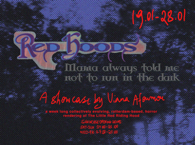 RED HOODS, or, “Mama always told me not to run in the dark” is a collective, Rotterdam-based, horror-twisted rendering of The Little Red Riding Hood / Roodkapje turned into a horror show/real-life scary mansion, reflecting everyday fear. A dark city-scape of Rotterdam: of its sounds, stories, places, visuals (Roodkapje’s story resonates in the streets, each time another “little red riding hood” meets a wolf).