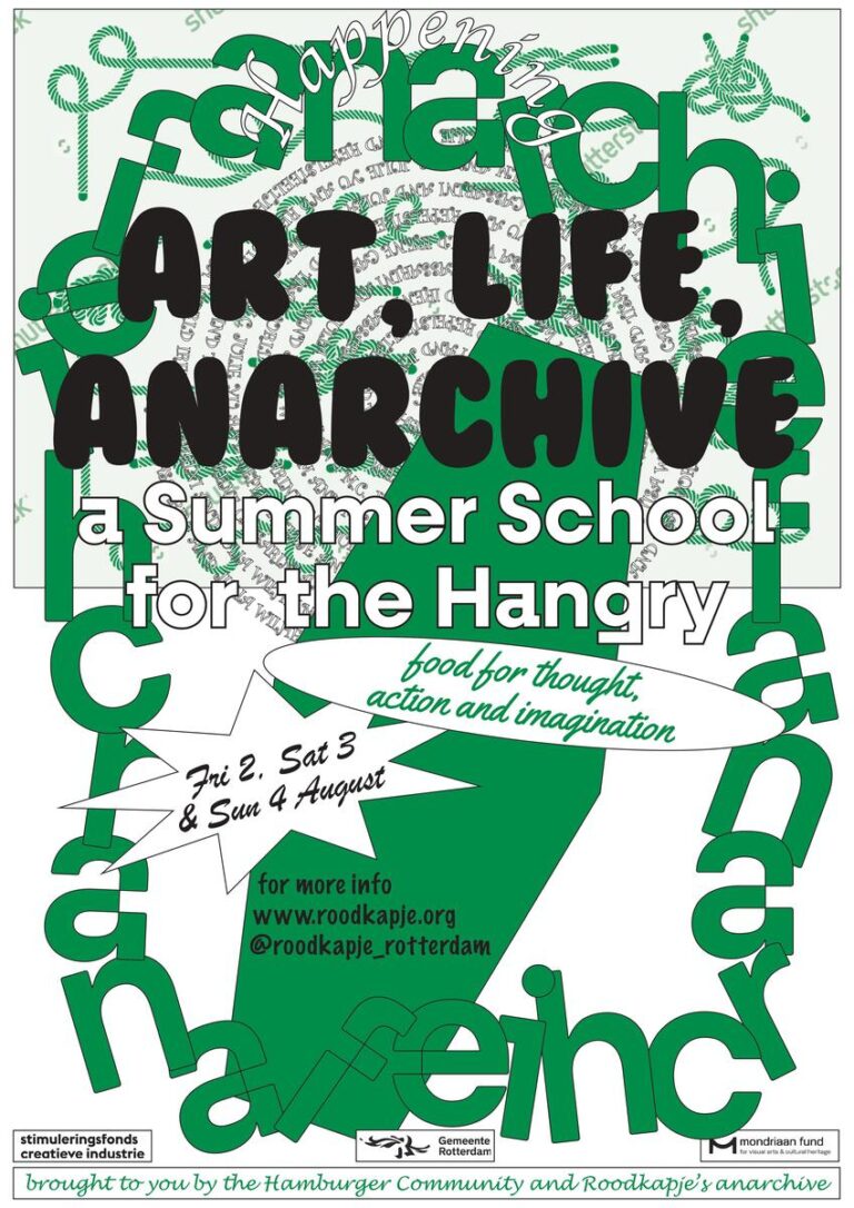 This summer school is organized by Roodkapje’s anarchivist Wan Ing Que and the Hamburger Community residents Julia Wilhelm, Repelsteeltje, M.C. Julie Yu, Tisa World and Irene Cassarini.