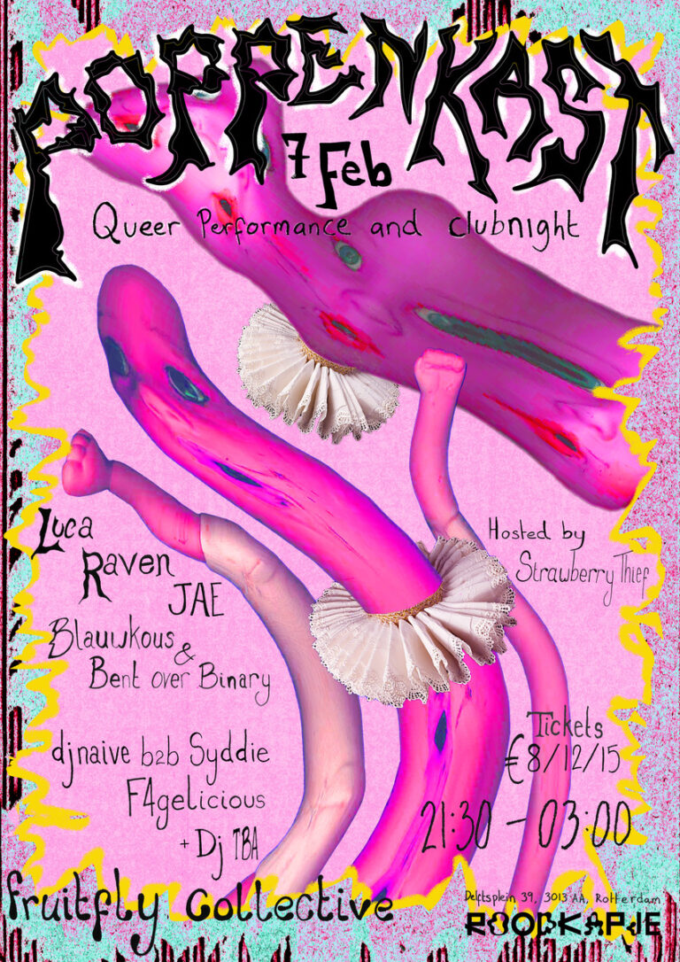 POPPENKAST is a queer performance and club night organised by fruitfly collective. A community event full of raw honesty, playful chaos, humanity and silliness.